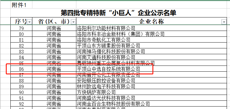 喜報!平頂山中選自控系統(tǒng)有限公司入選國家級專精特新“小巨人”企業(yè)名單